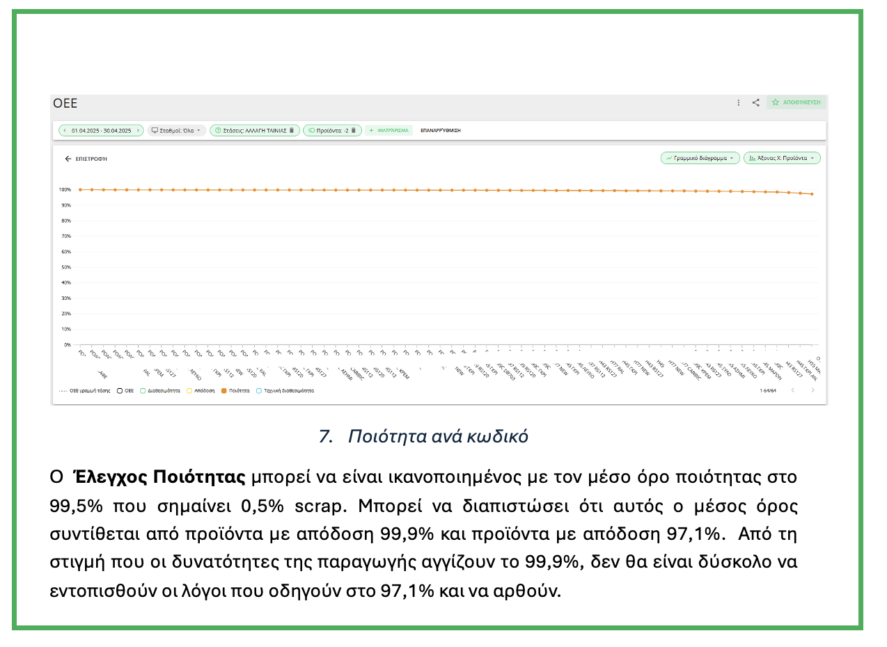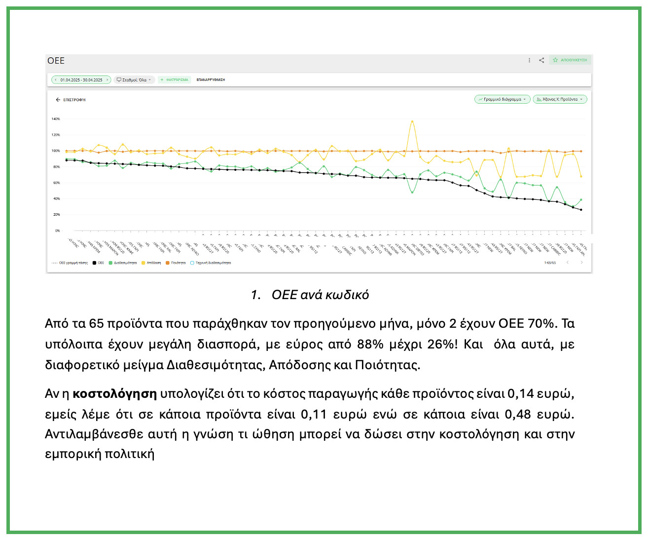 Το μυστικό είναι η προσήλωση στην παρακολούθηση του ΟΕΕ, με σύγχρονο, αυτόματο, αναλυτικό τρόπο σε πραγματικό χρόνο. Φανταστείτε ότι σε ένα εργοστάσιο έχουμε τα εξής δεδομένα